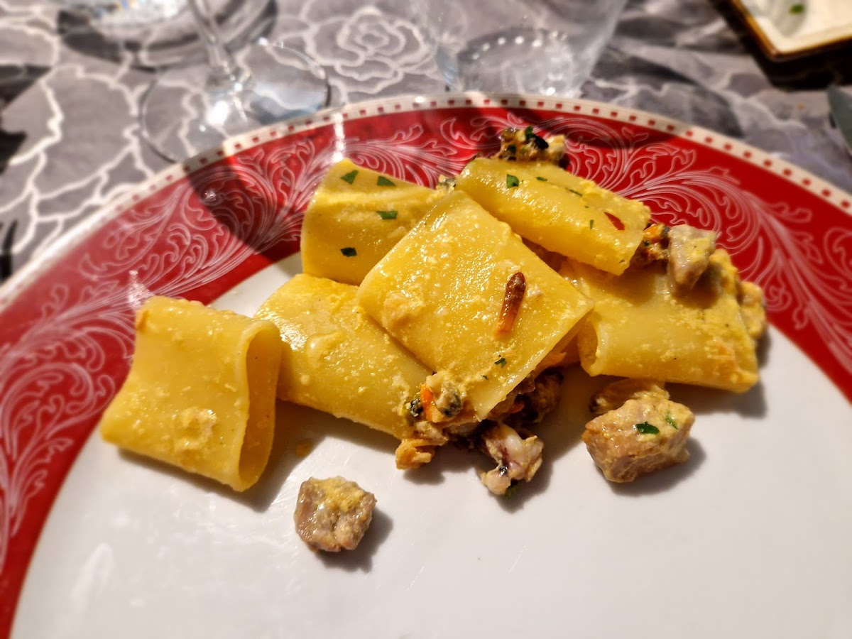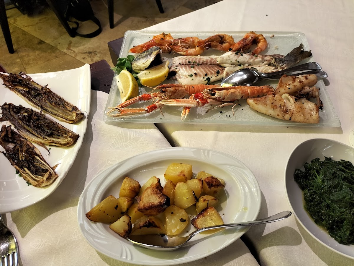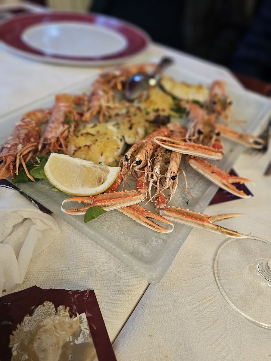 Our Airbnb host gave us a certificate for a multi-course dinner at Bocca d’Ersa. We found the staff welcoming, friendly, and professional. Dinner started with a selection of appetizers including a seafood salad, two carpaccios, a flan of baccalá and ricotta di bufala, pappa di mare, and fried cakes of fish and potato. It was some of the best fish (and, truly, some of the very best appetizers of any kind) we have ever tasted. It was followed by chitarrine pasta with pistachio pesto and clams, and paccheri with lobster and crab. Both were absolutely outstanding. Finally, a plate of roasted shrimp, followed by a choice of sweets (we had the wonderful lemon sorbet because we were getting quite full by this point). Dinner was accompanied by a bottle of 2016 “Il Poggio” Chianti Classico from a winery about a mile from the restaurant, but the wine list has quite a few other great wines at reasonable prices. This was a stunningly good meal in an unassuming restaurant in the heart of Tuscany. Our meal, without wine, was paid for by our certificate, but we would gladly pay the menu prices and more for the quality and quantity of food we had. I would absolutely recommend going out of your way to eat here. The specialty is seafood, and they do it very, very well. Highly recommended!